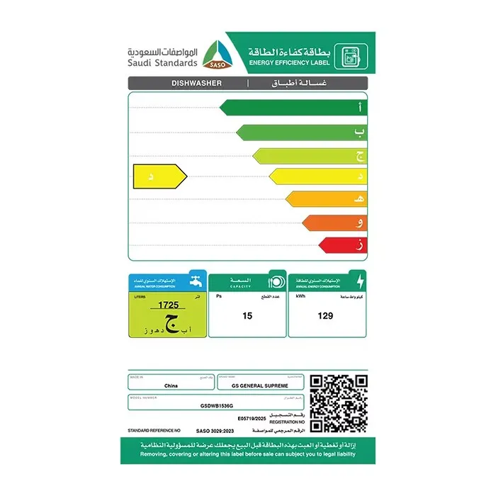 | الصنف | غسالة اطباق جنرال سوبريم بلت ان 15 مكان 6 برامج فضي |