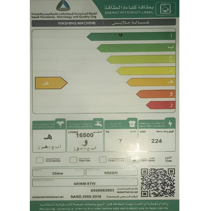 | مستوى كفاءة الطاقة طبقا لساسو (Saso) |
