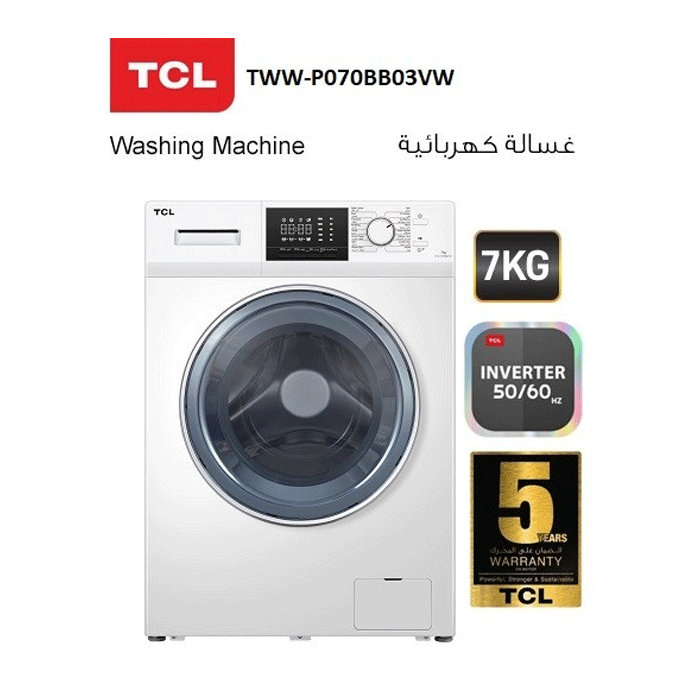 مواصفات غسالة 7 كيلو تي سي ال تعبئة أمامية انفرتر – أبيض :