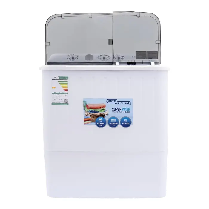 تتميز غسالة حوضين سوبر جنرال بسعة تجفيف تصل إلي 5 كيلو وهو ابتكار تقني يعزز جودة الغسيل ويوفر المزيد من العناية بالملابس وذلك من أجل تجفيف أكثر فاعلية عن طريق تصريف المياه من الاقمشة والملابس بواسطة دوران الهواء الجاف من خلال الملابس
