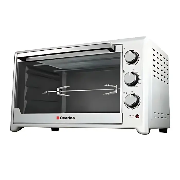 يأتي فرن كهربائي اوكارينا مزودًا بأدوات عملية تشمل سيخ للشوي، صينية مسطحة، وشبك داخلي، لتوفير مرونة كاملة في الطهي. هذه الملحقات تتيح تحضير مجموعة متنوعة من الأطعمة مثل اللحوم، الخضار، والمخبوزات بكفاءة، مع توزيع متساوي للحرارة للحصول على نتائج مثالية.