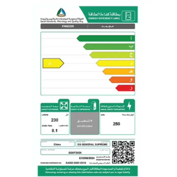 يتميّز فريزر جنرال سوبريم أرضى 8 قدم بكفاءة عالية في استهلاك الطاقة، ما يجعله خيارًا مثاليًا للمستخدمين الذين يبحثون عن أداء قوي مع تقليل فواتير الكهرباء. بفضل تقنياته المتطوّرة ونظام التبريد الذكي، يحافظ الفريزر على درجات حرارة مثالية بأقل استهلاك ممكن للطاقة، دون التأثير على كفاءة التجميد أو جودة حفظ الطعام. إنه جهاز يجمع بين القوة والاقتصاد، ويُعد استثمارًا ذكيًا طويل الأمد في كل منزل