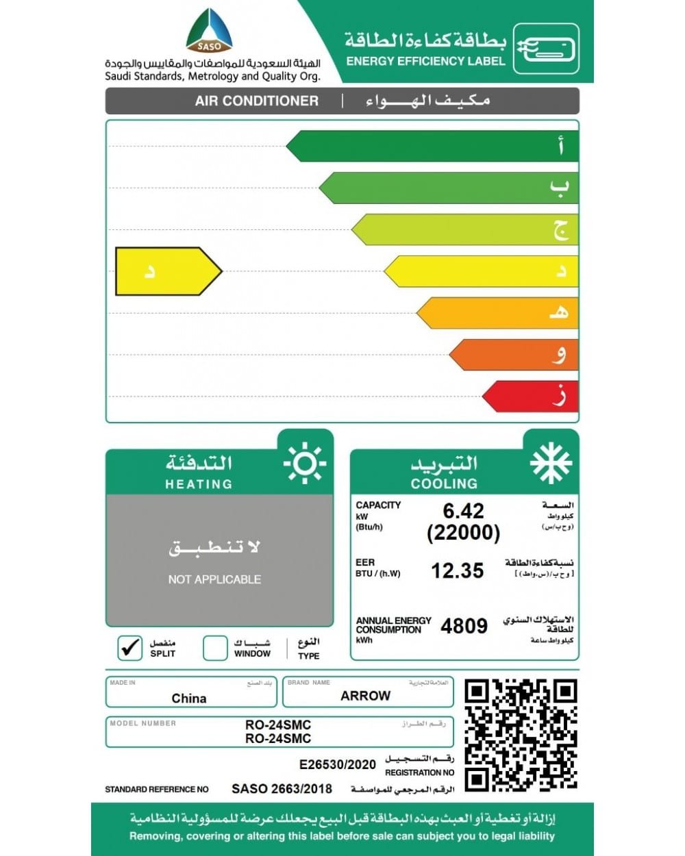 مواصفات مكيف ارو سبليت 22000 وحدة – بارد :