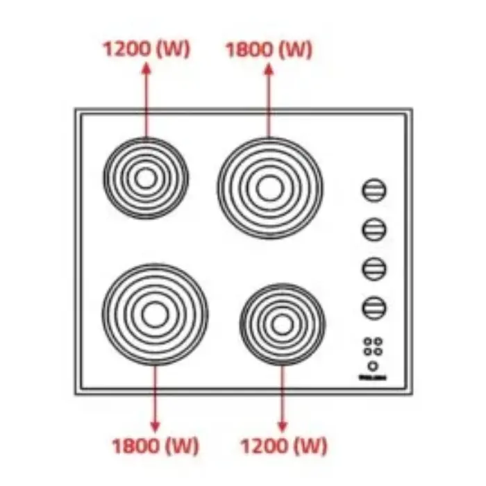 - قدرة الشعلات : 1800 وات / 1200 وات / 1800 وات / 1200 وات