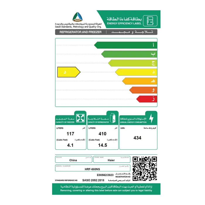 - سعة الفريزر : 117 لتر / 4.1 قدم