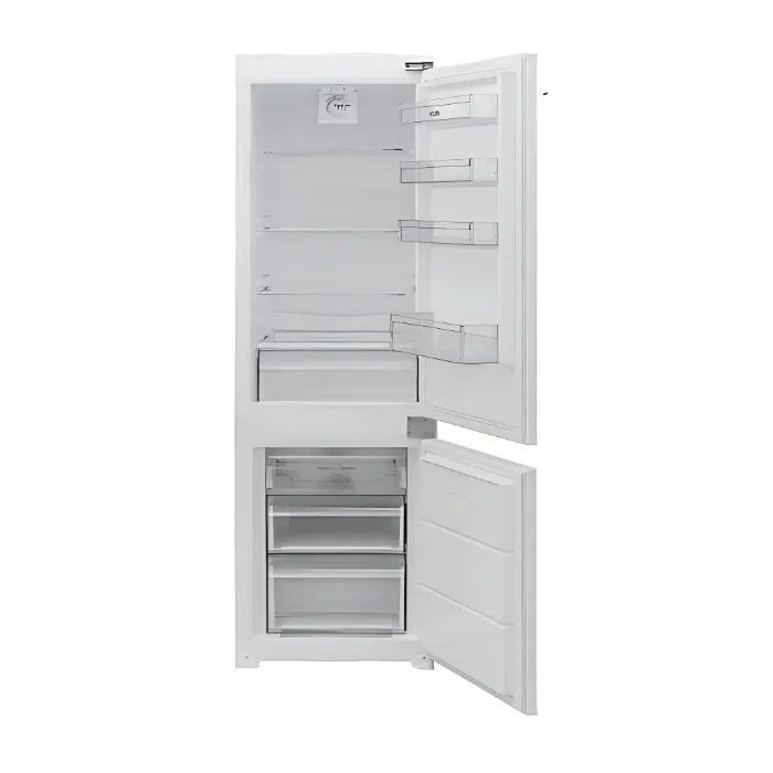 ثلاجة بلت ان كيتشن لاين مدمجة من Kitchen Line بتصميم عصري بباب مزدوج والفريزر في الأسفل، مما يوفر سهولة في الاستخدام وتنظيم مثالي للمساحة. تأتي بأبعاد 177 × 54 × 54.5 سم لتناسب مختلف تصميمات المطابخ الحديثة مع مظهر أنيق وانسيابي.