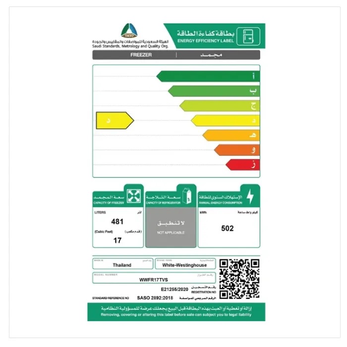 | مستوي كفاءة الطاقة طبقا لــ SASO |