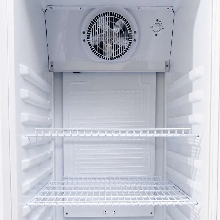 تم تصميم الثلاجة بشكل عصري باللون الأبيض الأنيق، مع واجهة عرض واضحة تساعد على إبراز المنتجات بشكل جذاب للعملاء. التصميم العملي يجعل الوصول إلى المحتويات سهلًا وسريعًا، كما يضيف لمسة احترافية للمكان سواء كان تجاريًا أو خدميًا.
