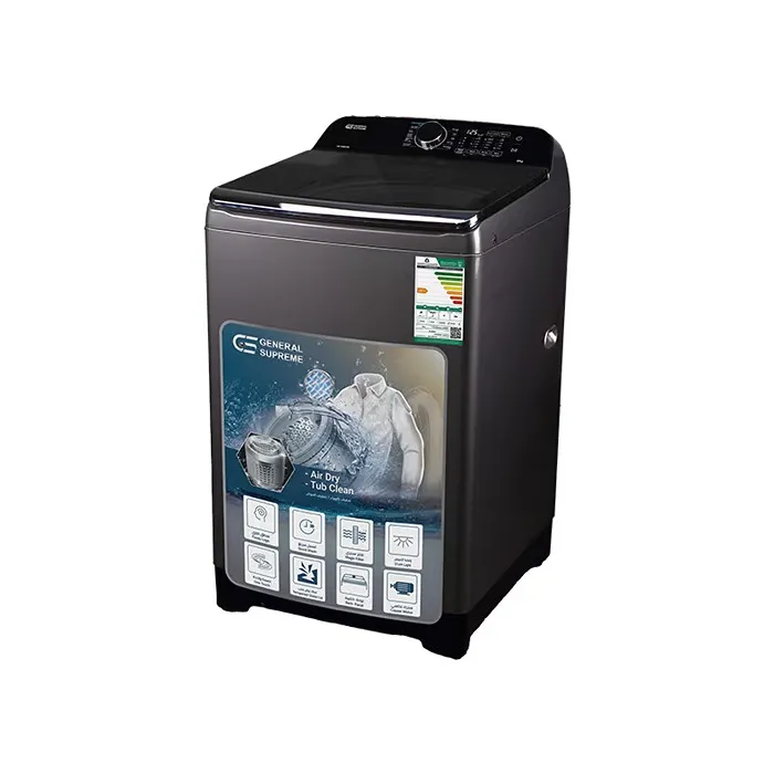 | الصنف | غسالة اتوماتيك جنرال سوبريم تعبئة علويه 10 كيلو – فضي |