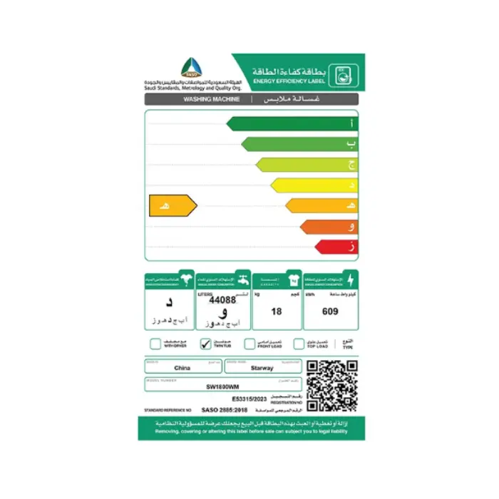 غسالة حوضين ستار واي 18 كيلو – أبيض SW1800WM