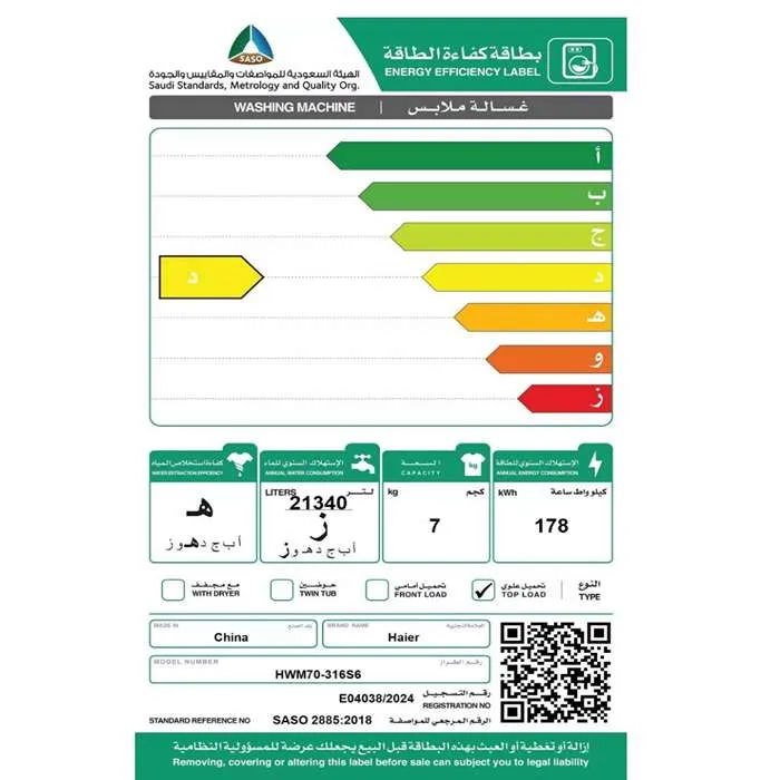 تتميز غسالة 7 كيلو هاير تحميل علوي بسعة كبيره ما يجعلها مثالية لغسيل الملابس اليومية للعائلات الصغيرة أو المتوسطة. توفر هذه السعة مرونة في غسيل كميات كبيرة من الملابس في دورة واحدة، مع أداء فعال يحافظ على نظافة الملابس وجودتها، ويوفر الوقت والجهد في عمليات الغسيل المتكررة.