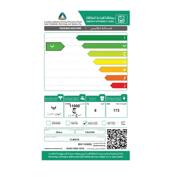 الوسوم: تعبئة أمامية, غسالة 8 كيلو, غسالة فالكون