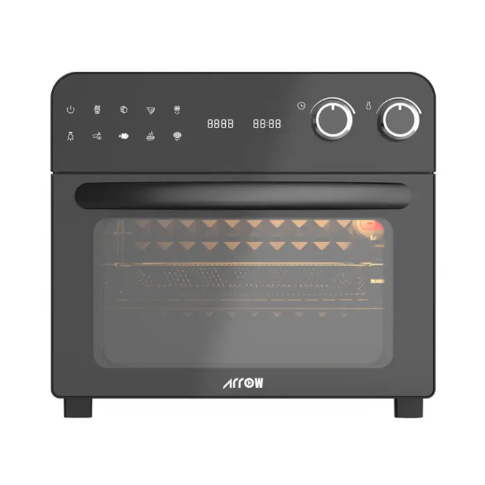 يأتي فرن و مقلاة هوائية ارو مع شاشة ديجيتال LED، مما يتيح للمستخدم عرض وضبط الإعدادات بشكل واضح ودقيق. توفير واجهة رقمية يسهل على المستخدم متابعة الوقت والإعدادات بسهولة.