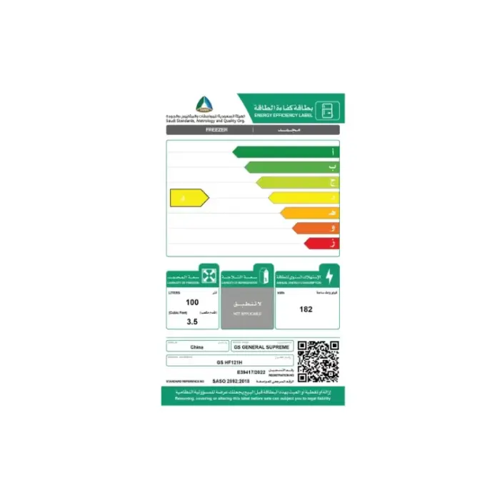 فريزر أفقي جنرال سوبريم 4 قدم – تجميد سريع – أبيض GSHF121H