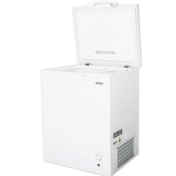 فريزر ارضي 5 قدم يتميز بتصميمه الأفقي العملي الذي يوفر مساحة تخزين جيدة بدون ما يشغل حيز كبير في المكان. حجمه مناسب جدًا للاستخدام المنزلي، سواء في المطبخ أو في غرفة التخزين، وبيخليك تستغل المساحة الداخلية بشكل أفضل من غير تكدس. اللون الأبيض الكلاسيكي يعطيه شكل هادئ ونظيف
