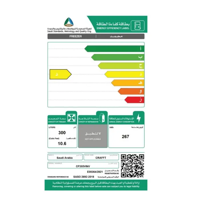 فريزر ارضي كرافت 11 قدم انفرتر – أبيض CF385VINV