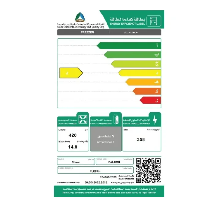 | الصنف | فريزر افقي فالكون 15 قدم – أبيض |