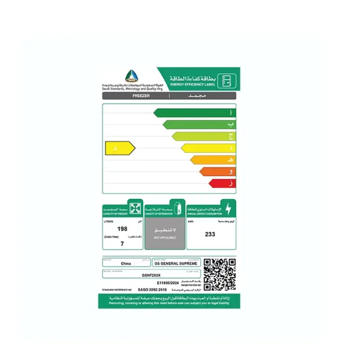 يتميّز فريزر جنرال سوبريم 7 قدم ارضي بكفاءة تشغيل عالية تساعد على تقليل استهلاك الكهرباء بشكل ملحوظ، ما يجعلها خيارًا اقتصاديًا وذكيًا لكل منزل. بفضل التكنولوجيا المتقدّمة في أنظمة التبريد والعزل، تحافظ الثلاجة على درجات حرارة مثالية مع استهلاك أقل للطاقة، دون التأثير على أداء التبريد. هذا يعني فواتير كهرباء أقل على المدى الطويل، مع الحفاظ على نضارة الأطعمة وكفاءة التشغيل اليومية. إنها استثمار يجمع بين الأداء القوي والتوفير المستدام.