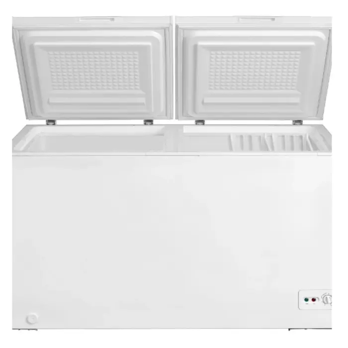 فريزر مسطح يوجين مزود بمنظم حرارة يدوي يمنحك مرونة كاملة في التحكم بمستوى التبريد، حيث يمكنك ضبط درجة الحرارة بسهولة لتناسب مختلف أنواع الأطعمة سواء كانت لحومًا أو خضروات أو منتجات مجمدة، مما يساعد على الحفاظ على الجودة والنكهة لفترات أطول مع توفير استهلاك الطاقة