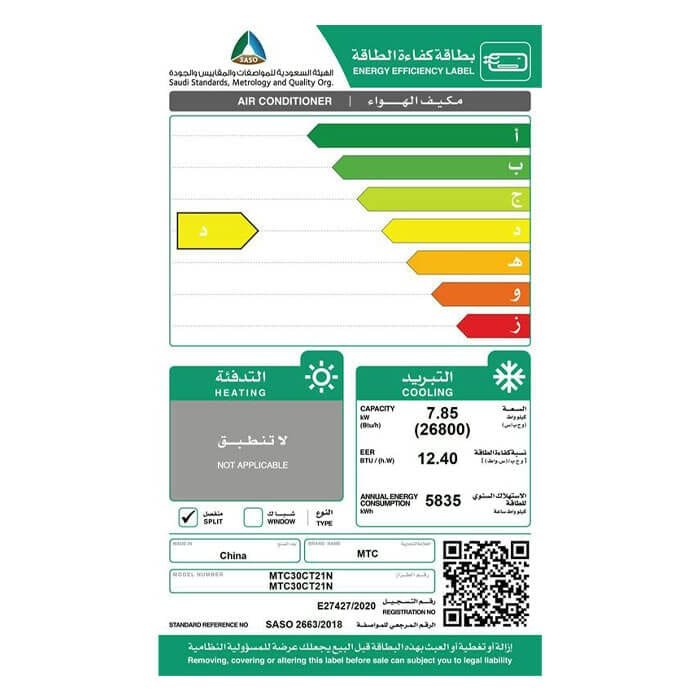 مواصفات مكيف سبليت ام تي سي 27200 وحدة – ريش ذهبية – بارد :