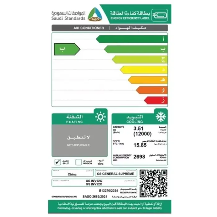 مكيف سبليت جنرال سوبريم دايموند بلو 12000 وحدة – إنفرتر – بارد GSINV12C