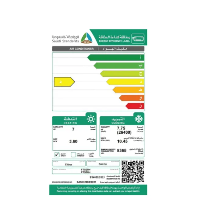 | الصنف | مكيف سبليت فالكون 26400 وحدة – حار/بارد |