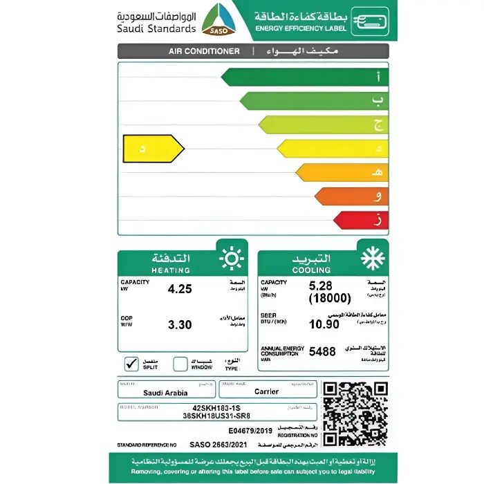 مكيف سبليت كارير 18000 وحدة حار/بارد 38skh18us31-sr8