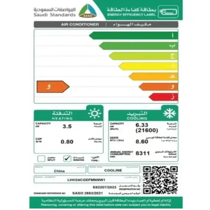 مكيف شباك كول لاين 21600 وحدة – حار / بارد LHH24CGEFMNNW1